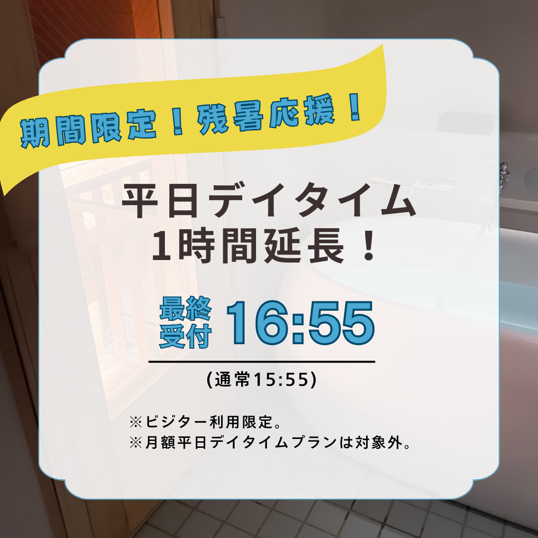 大人気の平日デイタイム価格の受付時間を1時間延長しております!!