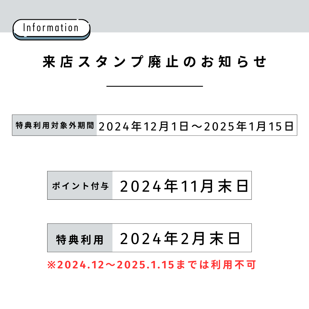 重要システムリニューアルによる来店スタンプ廃止のお知らせ